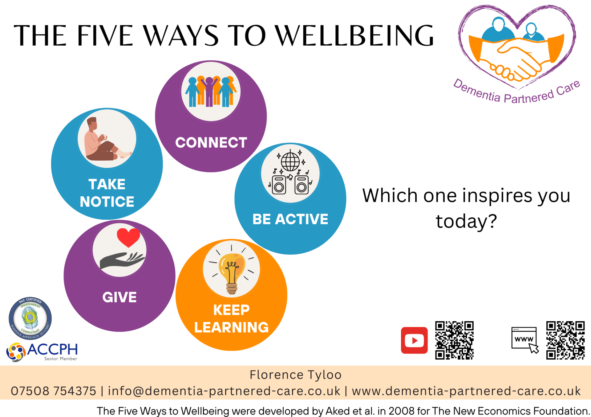 I appreciate this concept because these actions are easy to implement, no matter where you are. As a care partner, you can practice them for yourself—because your well-being matters. You may also find ways to integrate them into daily life with your loved one, helping to enhance their well-being while strengthening your relationship.